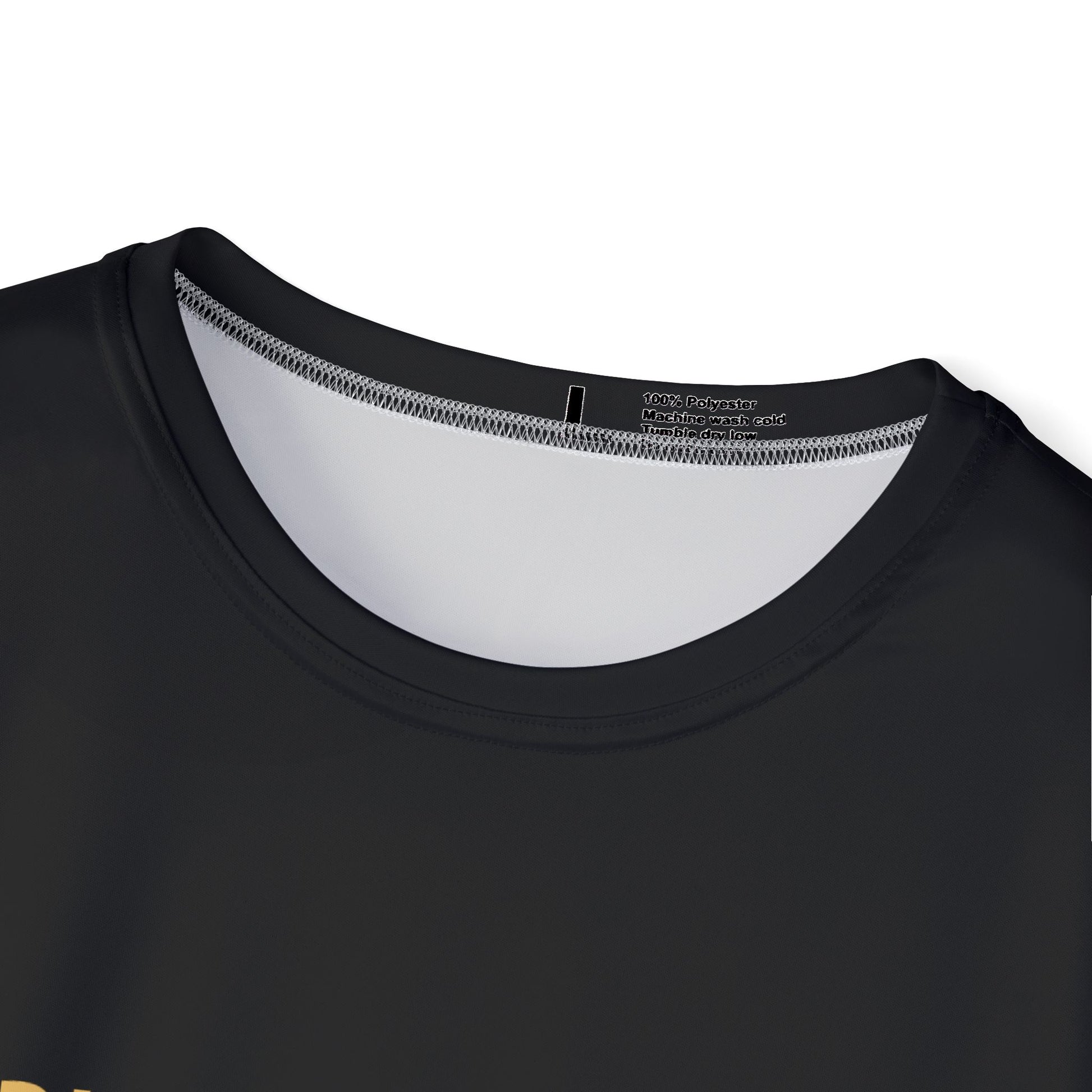 This athletic jersey channels quiet confidence with a sleek black backdrop and bold gold accents. Lightweight, quick-drying polyester keeps you cool through drills and long workouts, while the ribbed collar and armholes flex on and off then snap back for a clean, fitted silhouette. Subtle branding—flame emblem and "Royal Flames Athletics / Built Different"—reads like a personal mantra: steady, focused, unapologetic. Wear it to training sessions, pickup games, or packed travel days when you need performance fabric and a look that speaks to commitment and craft.